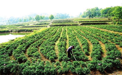 乡政府组织乡村干部到安徽亳州考察中药材种植及市场,回乡后引进湖北领康中药材有限公司,在铜钟、坳上、马桥、清水、独石、在下等村成片种植黄精、射干、菊花、芍药、紫菀、知母等中药材,采取公司十基地十农户的合作经营模式,带动农民脱贫致富,目前已种植中药材2000余亩,为农民脱贫致富提供就业岗位和增收。