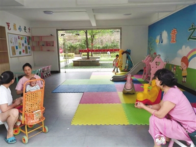在“儿童之家”,71岁的王圣林坐在小椅子上看书,3岁的孙子在一边玩滑滑梯。“服务挺周到的,有椅子、饮水机、图书还有厕所等。”王圣林表示。