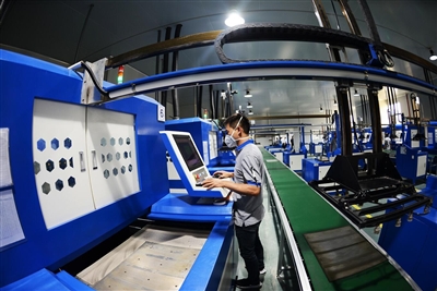 20日,湖北(通城)平安电工材料有限公司员工在加紧生产外销产品。