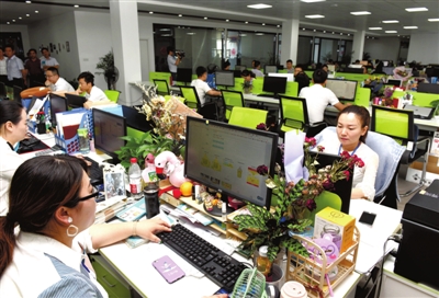 5日,位于咸宁高新区光谷南科技城的方片互动网络有限公司工作人员专注线上服务。