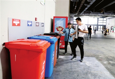 国家会展中心(上海)位于上海市青浦区,这里常年举行各类展会,也随之产生了大量的垃圾。一支由120余人组成的保洁队伍担负着展馆常规展会期间的垃圾分类处置工作,日均处理干湿垃圾总量在26吨左右。垃圾分类投放、干湿分离规定的实施,对展馆保洁和垃圾快速清运工作带来了积极的促进、推动作用。