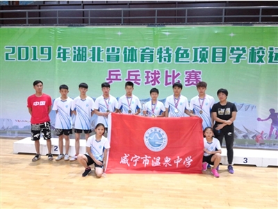 7月8日,湖北省特色项目学校运动会乒乓球比赛在荆州市圆满结束。本次比赛由省教育厅、省体育局主办,经过3天的激烈角逐,咸宁市温泉中学代表咸宁市参赛共获得女单第三,混双第二,男团第三,女团第四的优异成绩。 通讯员 余茹 摄