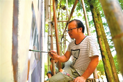 7月18日,崇阳县桂花泉镇桂花村,几位画师正在墙壁上作画。