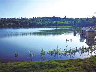 现在,田野国家乡村公园起步区,一条5200米的环村自行车赛道从森林公园穿过,串起高科技工业园、现代农业示范园。站在文昌塔顶,水波潋滟的南湖、北湖,村民们居住的一排排洋房别墅尽收眼底,风清楼、乾坤阁、酒窖、农博馆、思源广场、初心园、振兴园等星罗棋布。