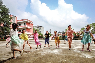 “老师们到来后,每天带我们唱歌、跳舞、做手工、玩游戏,让我们非常开心。”今年8岁的双胞胎兄妹余逸好和余逸飞说。他们的父母在城区打工,平日里爷爷奶奶要忙农活,放假后都是兄妹俩自己玩。支教老师到来后,他们的生活“变样”了。