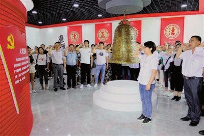 图为北港镇组织村(社区)“两委”干部在该县廉洁文化教育基地重温入党誓词时的情景。 通讯员 毛瑜 摄