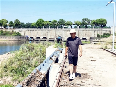 连接泵站与拦护栅的有一小段渠边土路。在连日高温炙烤下,它早已变得灰白。这条连接路,陈火平每天至少要走三个来回。