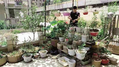 各种花,草,树,都是梅亮绿色城堡的一员。梅亮有一儿一女,每天梅亮在打点花圃的时候,儿子女儿也会来“帮忙”。梅亮说:“这片绿色城堡也是为他们打造的,为了让他们在这个水泥地里看见美丽的绿色。”