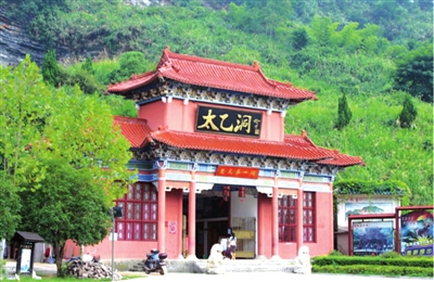 太乙洞距今360万年,主洞全长2000余米,有支洞8条,大小景点100余处,洞中既有开阔粗犷可容纳万人的大厅,又有曲径通幽的小巷,最高处约20米,最宽处30多米。洞中钟乳倒悬,石柱林立,如一人间仙境。出洞后便是景色宜人的太乙观。