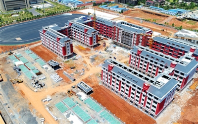 目前该校主体工程建设和内部装修已完成,现在进行校内道路、运动场等外部附属工程收尾,今秋开学交付使用。