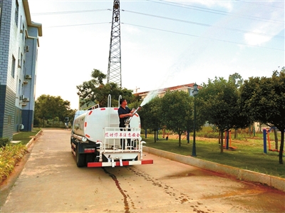 入夏以来,受持续高温晴热天气影响,鱼岳镇辖区树木正经受严峻考验。连日来,该镇启用多台洒水车开展绿化抗旱工作,保证浇水质量和效果,不留死角,同时加强树木病虫害防治,保证绿化效果。 通讯员 汪黎文 摄