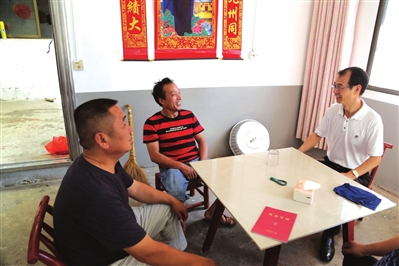 图为该院党组书记、检察长汪隽深入贫困户佘同清家中促膝谈心时的情景。 通讯员 汤葵 摄