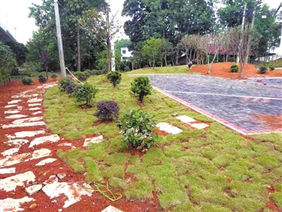 本报讯 记者黄柱、特约记者童金健、通讯员刘亚琴、张升明报道:12日,记者走进赤壁市中伙铺镇安丰村群众小游园,映入眼帘的是干净整洁的鹅卵石小道,错落有致的白墙壁,还有满睛翠的草皮、绿树,以及忙碌施工的工人们……