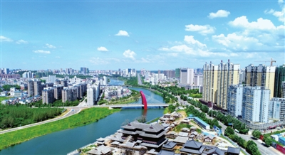 8月18日,无人机镜头下的香城泉都高楼林立、玉带蜿蜒,在蓝天白云的衬托下,更显迷人。作为全省首个启动公园城市建设的城市,近年来,我市突出“依山、拥湖、面江、同城”的城市发展理念,大力推进“一城十区二十景”建设,一个集人、城、境、业高度和谐统一的公园城市展现在世人面前。