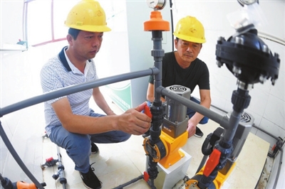 19日,咸安区汀泗桥镇花纹水厂,技术员在对设备进行调试。