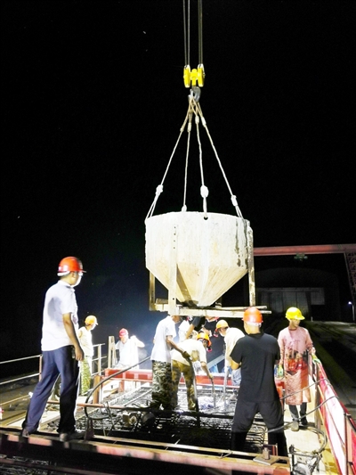 据南岸预制梁厂技术负责人肖鑫介绍,此次浇筑的箱梁属于赤壁长江公路大桥南岸接线左湖大桥预制小箱梁,梁长29.36米,顶板宽2.4米,底板宽1米,梁中高1.6米。