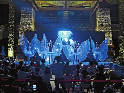 当晚,云中湖景点车水马龙、灯火辉煌。海拔1567米的铜鼓包,更因早可观日出云海,晚可见璀璨星河,而成为天文爱好者的“追星基地”。