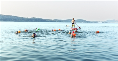 8月28日清晨,在嘉鱼三湖连江,人们迎着朝阳开始晨泳。生命在于运动,在这里锻炼身体,欣赏美景,心情愉悦。近年来,嘉鱼县委、县政府加大对三湖连江环境治理,水质提升,改善民生,百姓受益。