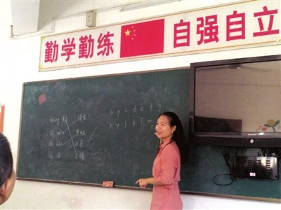 相对于这些学生的年龄和年级,他们学的知识似乎过于浅显。这节语文课上,吴星星耐心地先给大家复习拼音字母,又教他们简单的词汇。孩子们大多数听讲很专注,听到老师提问自己会的问题时,举手也很积极。每当有学生回答了问题,吴星星就给他们一个热情的鼓励。