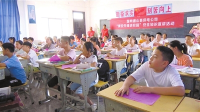 9月5日,通山县供电公司组织共产党员志愿者、青年志愿者走进九宫山镇中学开展安全用电宣传进校园活动,为孩子们送上精彩纷呈的开学第一课。