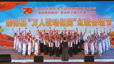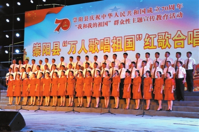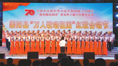为隆重庆祝中华人民共和国成立70周年,9月5日至29日,由中共崇阳县委、崇阳县人民政府举办的崇阳县“万人歌唱祖国”红歌合唱节在人民广场盛大启幕,迎接新中国成立七十周年。