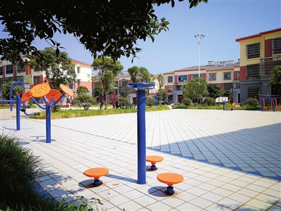 记者看到,这个布设有篮球架、乒乓球台和划船器、平步机、单双杠、扭腰机、跷跷板等健身器材的村民休闲广场,聚集了不少老人和小孩,正在各自喜欢的运动器材上锻炼。