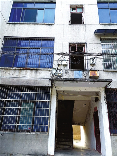 在咸安区可乐公司小区的楼道里,堆放着大量杂物,火灾隐患很大。沿街门面楼栋的背面,墙体布满管道、线路,杂乱无章。