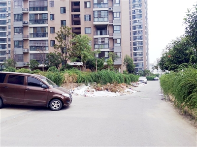 记者在翰林名都小区看到,在小区的一块空地上,堆放了大量生活垃圾,给居民生活带来不便。几个居民都说,垃圾堆放在这里已经好几天了,因为天气炎热,每天都散发出气味,环境确实比较糟。