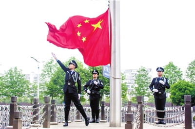 9月16日,市公安局办公楼前,庄严的升国旗仪式如期举行,400多名民警沿着63级台阶整齐列队,齐唱《中华人民共和国国歌》和《中国人民警察警歌》。鲜艳的五星红旗冉冉升起,雄壮的歌声高亢嘹亮,抒发对党、对祖国、对人民公安事业的铮铮誓言和赤诚忠心。