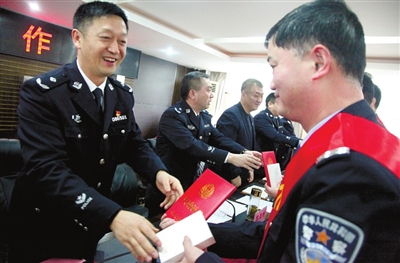精神上的富足,比物质上的满足更为重要。警营内崇尚荣誉、珍惜荣誉、争取荣誉的氛围越来越浓。2月15日上午,市公安局举办首届荣誉退休暨新警入警宣誓仪式,老、中、青三代汇聚一堂,退休民警光荣告别警营,新招录民警庄严宣誓,抚今追昔,新老更替,继往开来。