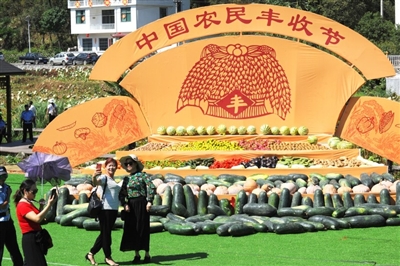 金秋咸宁,五谷丰熟,瓜果飘香。23日上午,通山县南林桥镇石门村内人声鼎沸、锣鼓喧天,“绿色荆楚·五谷丰登”2019年中国农民丰收节湖北主会场活动在此举行。来自各地的农民代表们欢聚一堂,载歌载舞,欢庆农民丰收节。