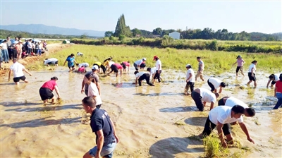 本报讯 特约记者胡剑芳报道:稻花香里说丰年,白水畈上动起来。9月22日,秋高气爽,稻浪飘香,以“庆丰收、爱运动、展新风”为主题的“国贸杯”咸安区第九届农民运动会在高桥萝卜小镇白水畈田野剧院激情举行,来自全区13个乡镇办场的200余农民运动员在金灿灿的田野上,通过运动竞技庆丰收。