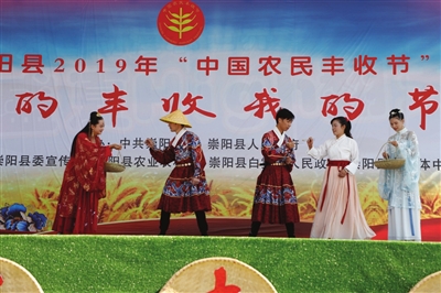 为隆重庆祝中华人民共和国成立70周年,庆祝农民自己的节日,9月23日是秋分日,我国迎来第二个中国农民丰收节。由中共崇阳县委、崇阳县人民政府主办,县委宣传部、县农业农村局、白霓镇人民政府、县融媒体中心承办的该县2019年中国农民丰收节,正在崇阳县白霓镇浪口村共同举办“醉美崇阳 五谷丰登 ——崇阳县2019年中国农民丰收节”。县领导杭莺、程冰野、王艳梅、王崇琳、石峰、蔡耀斌、谭正林等参加活动,各乡镇乡镇长和各部办委局主要负责人及种养殖大户均现场观摩了活动。