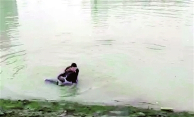无独有偶。同样是在冰冷的淦河,90后唐洪名上演着同样感动人心的故事。