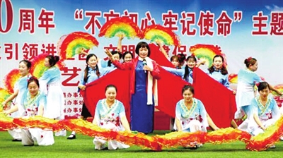 | ▲26日上午,咸安区温泉街道办事处温泉社区举办“庆祝新中国成立70周年不忘初心,牢记使命”文艺展演。通讯员 周香玲 摄 |