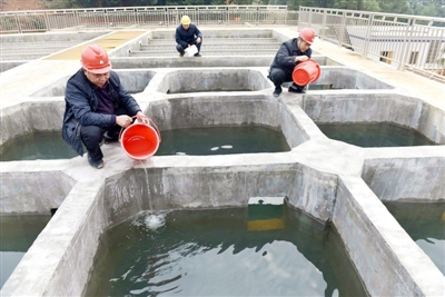 昨日,工人在检测北港水厂水质。近年来,通城县以巩固提升为主线,全面提升农村饮水安全保障水平,促进农村饮水安全工程向安全型、稳定型转变。至目前,全县已完成5.58万人巩固提升任务,新建、管网延伸饮水安全工程33处,让群众吃上安全水,放心水。