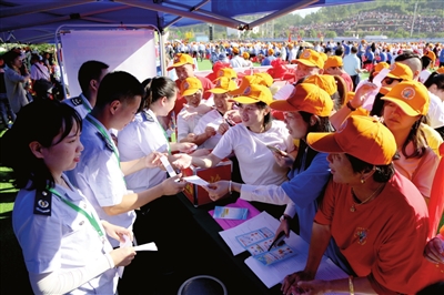 9月23日秋分时节,2019年中国农民丰收节湖北主会场在通山县南林桥镇石门村拉开帷幕,全面展示农村新面貌,农民新形象,农业发展新成果。通山县税务局组建了15名青年业务骨干税收宣传队,走进中国农民丰收节,以农民需求为导向,全面精准提供纳税服务。