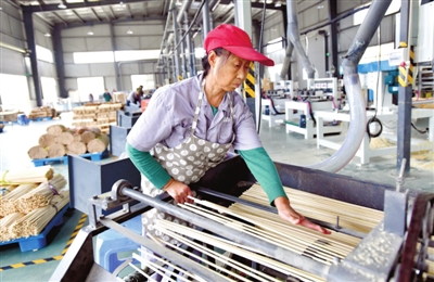10月20日,赤壁市陆水循环经济产业园的汇圆竹业生产车间,当地工人正在加工竹制品。