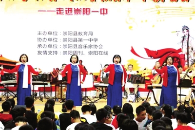 连日来,为隆重庆祝中华人民共和国成立70周年,展示崇阳县音乐文化的艺术成就,该县音乐家协会民族管弦乐红歌演唱会在崇阳一中拉开帷幕。