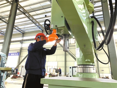 近日,武汉中用工业科技有限公司嘉鱼生产基地,一位工友正忙着操作摇臂钻床,整个生产车间一片繁忙景象。