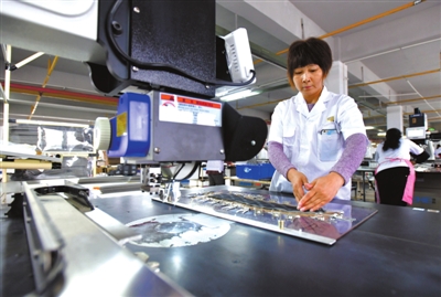 10月20日,崇阳经济开发区,湖北森永乘用车内饰配件有限公司车间,工人们正在生产汽车内饰配件。