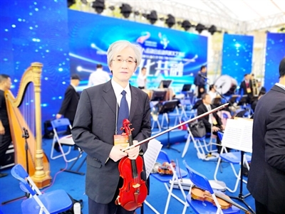 22日晚,湖北长江爱乐乐团应邀在“军运村”演出交响音乐会,被誉为“鄂南第一小提琴”的咸宁音乐家王建华参与其中。