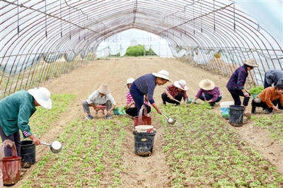 近日,在咸安区双溪桥镇杨堡村致远种植专业合作社蔬菜大棚种植基地里,村民们正忙着移栽双溪香芹。