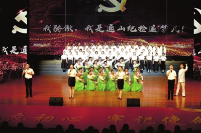 晚会在歌舞《映山红》中拉开帷幕,歌伴舞《江山》《放歌新时代》、话剧《王荷波》、小品《家风》、山歌联唱《清风扬》、快板《八项规定记心中》、大合唱《纪检监察之歌》等12个形式多样的节目轮番登场,讴歌了勤政廉洁,弘扬了廉政文化,倡导了廉洁新风,演员们跟随着铿锵有力的旋律,用嘹亮的歌声唱响惩腐肃贪的信心和决心。