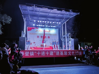 10月30日晚,赤壁市赤壁镇政府院内灯火通明,人声鼎沸,赤壁镇“十进十建”进基层文艺汇演吸引近600名干部群众观看。