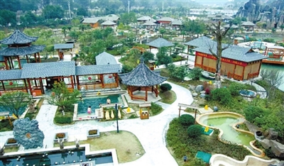 龙佑赤壁温泉度假区内四十多处多功能各异的温泉池依山傍水散布在山间林,一步一景,错落有致,形态各异,迥然有序。