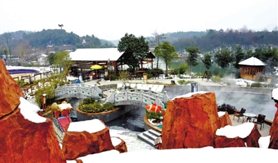 “天上人间,瑶池温泉”。楚天瑶池温泉坐落在咸宁市城区淦水河畔,是“华中第一泉”的沸潭牌坊所在地。