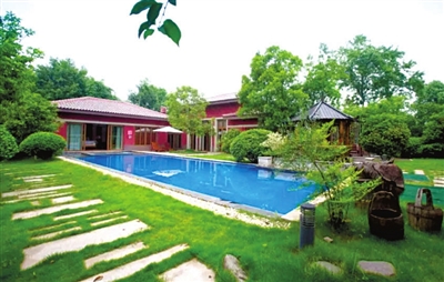 春泉庄温泉在设计中保留自然环境的原始生态风貌,43个泡池依地形、错落有致,隐卧在原生树木和山石的怀抱之中,四周田野风光尽收眼底。