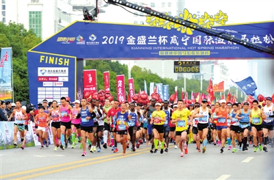 本报讯 记者朱哲、庞赟报道:24日上午八时,2019咸宁国际温泉马拉松在市人民广场鸣枪开跑。16600名中外跑友从这里出发,用奔跑体验马拉松运动的无限精彩,用脚步丈量醉美咸宁的无穷魅力。