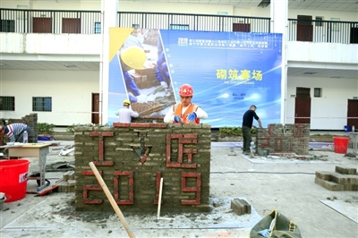 “咸宁工匠”赛场精彩纷呈。砌筑工比赛比往年增加了难度。拥有31年砌筑砖工龄的梅玉龙,去年获得第一名,今年憾居了第二名。他表示,今年难在花样上,墙体多了一个花窗洞,新增了“工匠”两字,他用了6个小时,按图做成一堵别有创意的墙体。“遗憾的是工具没有带齐,与第一名擦肩而过。”梅玉龙略有失望地说。